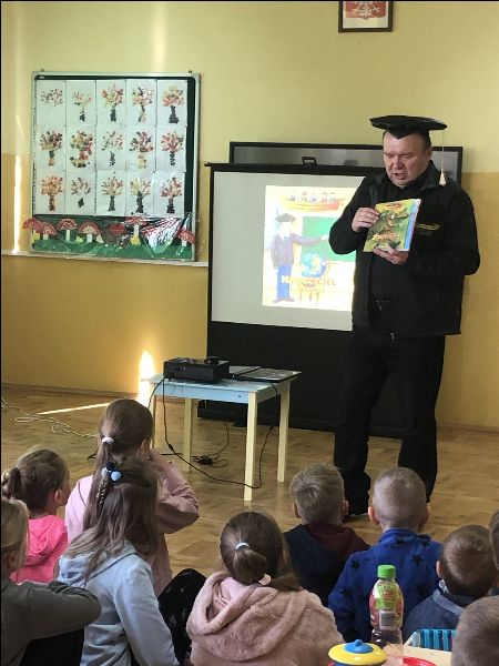 Pan Roman czytał dzieciom swoje utwory dotyczące różnych zawodów: nauczyciela, bibliotekarza, żołnierza, strażaka i policjanta. W ciekawy sposób udało mu się zaktywizować naszych najmłodszych wychowanków.